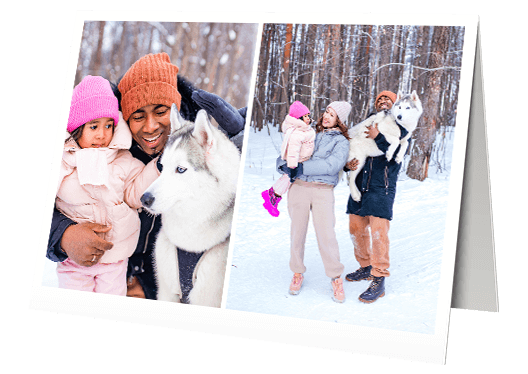 Wait, now you have so many good pictures and don't know which one to pick from your selection? For photo greeting cards we offer different styles, so you can arrange up to nine pictures on your card. CLASSIC and INSTANT offer you the possibility to use a picture for your photo greeting card. If you have two panoramic pictures that you can't choose between, use our style PANORAMA. What? Two are still not enough? Ok, then just choose between TRIO, SKYSCRAPER or LANDSCAPE. This style offers space for three pictures and you have the choice of how you want to arrange them.